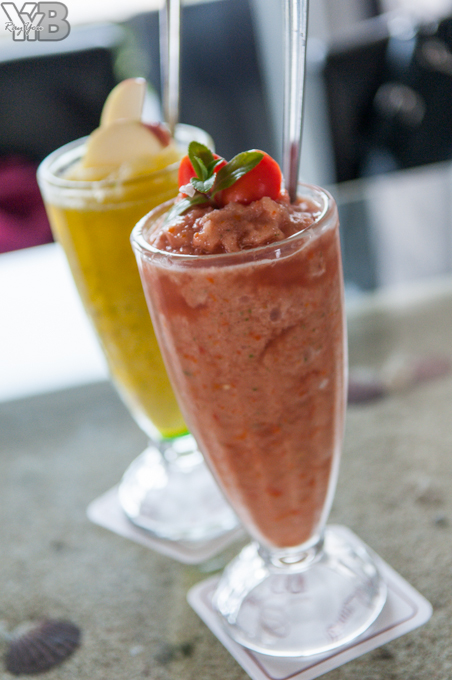 柳橙蘋薄荷冰沙、蕃茄水紫蘇冰沙