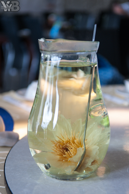 用蓮花沖泡的熱茶在玻璃瓶裡面綻放,還頗有視覺效果~