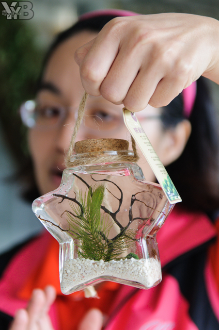 將軟珊瑚捲曲後小心放入瓶內,瓶口越小難度越高 XD
