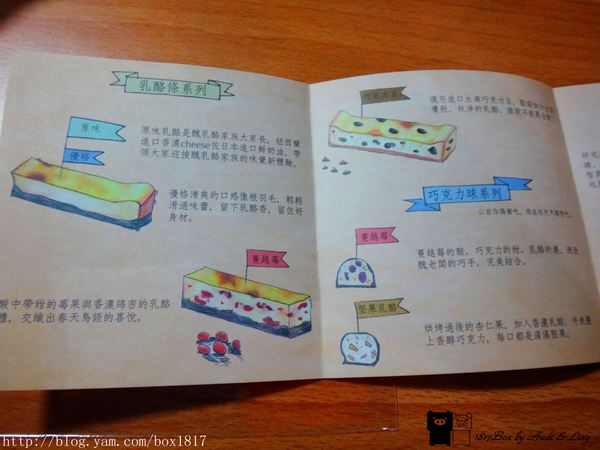 品嚐了乳酪條禮盒(原味,巧克力,優格,蔓越莓)還有巧克力球系列和老闆娘私房甜點(藍莓小盆栽)