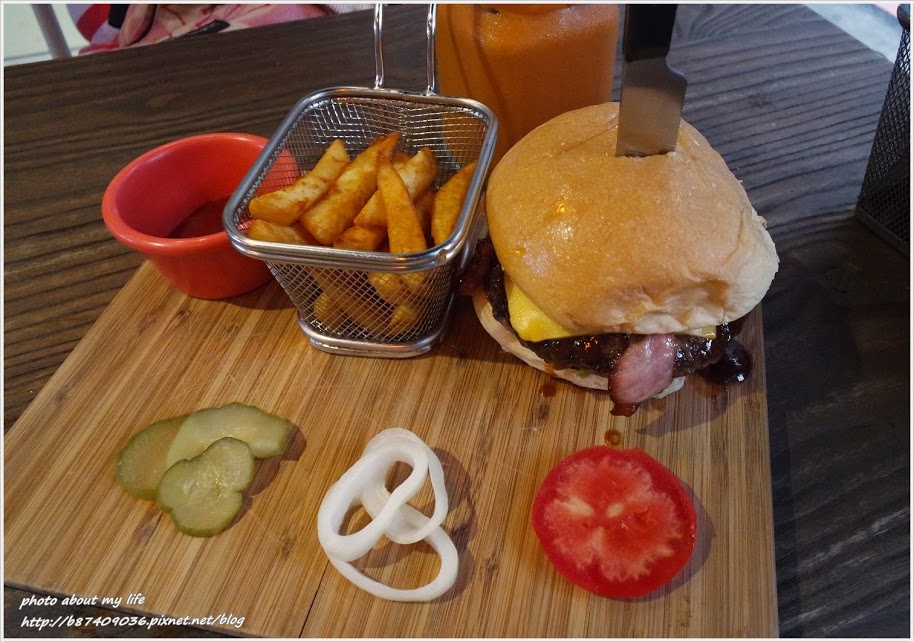 漢堡肉排的厚度很驚人!還露出截培根彷彿漢堡正俏皮地吐著舌頭XD