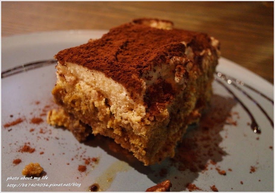 最後送上手工製作的提拉米蘇 吸飽咖啡液的蛋糕體讓整體口感偏濕軟 味道還不賴