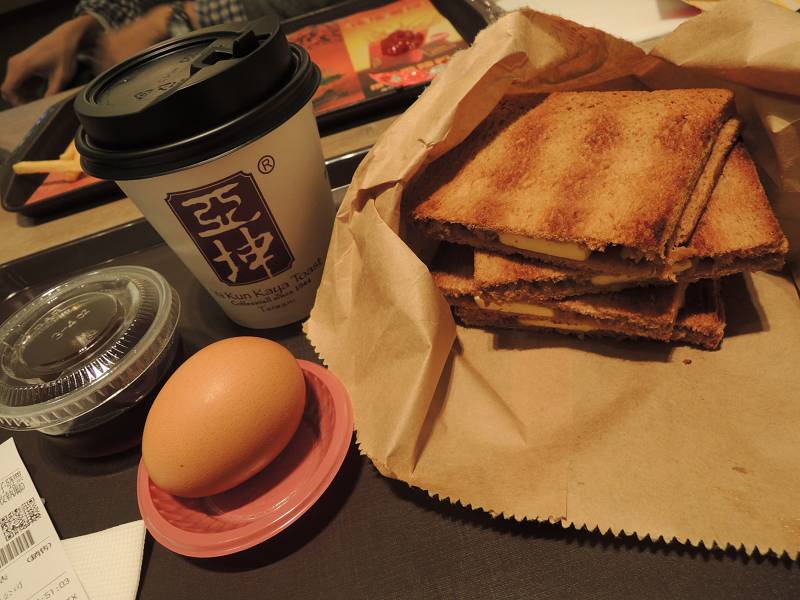 咖椰吐司裡面有一小片小片牛油 加上椰醬 搭配上烤得很酥脆的薄吐司 鹹鹹甜甜很好吃~只