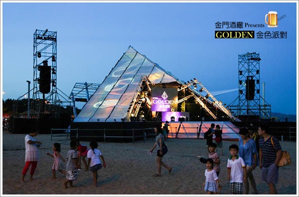 金門縣政府於6月~7月舉辦為期一個月「2014夏艷金門海洋風活動」吸引許多台灣及大陸觀光客前往朝聖… 其中7/26(六)19:30在后湖沙灘登場的是由金酒公司主辦的系列活動「第三屆GOLDEN金色派對」… 以「金色」為主題,首創金門前所未有的金字塔造型舞台…