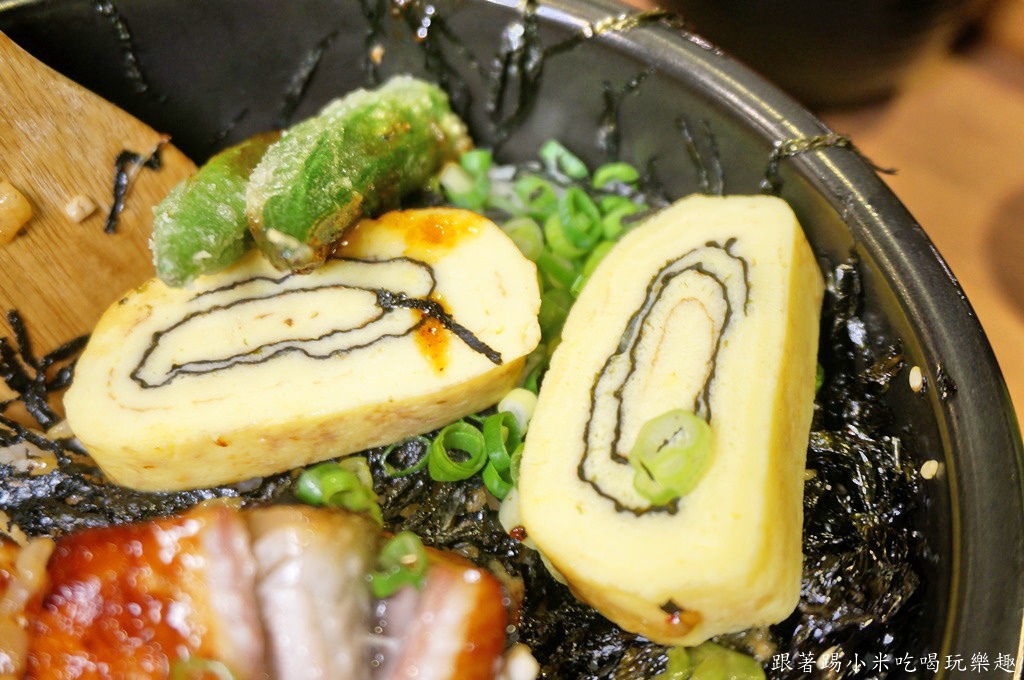 鰻魚看來真的很重, 厚道相當有實力, 海苔絲給的也很多, 熱熱的上桌時還會聞到海苔香, 另外還有玉子燒/蔥/鮭魚卵等配菜! 讓人吃得很過癮~~~