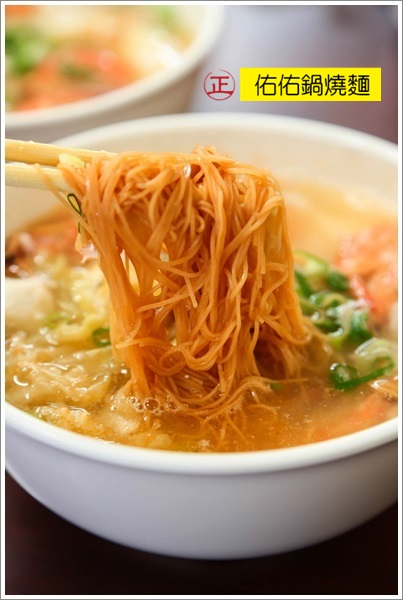 好吃料多又實在的佑佑鍋燒麵…第一次吃到真是有相見恨晚的FU~阿!!!…還記得讀大學時就在楠梓看過「佑佑鍋燒麵」這間餐廳…但喜歡吃麵的我卻不知怎的從來沒吃過…而就在畢業即將滿5年時終於讓我有機會來品嚐看看了XD…到底這傳說中料多實在又美味的佑佑鍋燒麵有多好吃就讓我們繼續看下去吧!…佑佑鍋燒麵在高雄已經有很多分店…我們這回和朋友約的是在建工路上新開的這間…招牌是我非常喜歡的桃紅色…光看就覺得很開心…我們約的時間是十一點半左右…當時還不到正中午的用餐時間…這張照片是11點多到時先拍攝的外觀…而約過半個多小時過去後人潮立馬就將整間店淹沒了XD…這張是約12點多要離開時再拍攝的照片…裡頭的座位早已客滿…後來到的客人都坐到外頭來囉!…店裡的用餐環境非常舒適乾淨…座位也很寬敞不擁擠…吹著涼涼的冷氣再吃著熱熱的鍋燒麵真是幸福到沒話說阿!…調味粉和餐具都是採自助式的…而調味粉用完後記得要放回原處才方便下一位客人使用哦…內用有三種汽水可以喝…分別有橘子汽水、七喜和百事可樂…這三樣都是momo我超愛喝的…尤其是橘子汽水當下就豪飲好幾杯啦XDD…炸黑輪片35元佑佑鍋燒麵可不只有賣鍋燒麵這麼簡單而已…除了鍋燒麵外店裡還有炒飯、蓋飯、燴飯和豬排&炸黑輪片…愛吃炸物的我當然是不能錯過炸黑輪片的呀!…外酥內軟的咬勁真的是波棒的…肉絲蛋炒飯65元在介紹鍋燒麵之前先來看看店裡的另一項招牌「炒飯」…我們點的是肉絲蛋炒飯,上桌時光看份量就覺得超飽XD…而平常不愛吃飯的我居然也愛上了這香氣十足的蛋炒飯…溼潤的口感很對我的味…忍不住就讓人一口接一口…鍋燒意麵70元接下來就要來看到店裡最有名的「鍋燒意麵」啦!…老實說momo我是很怕吃意麵的人…還記得大學時在學生餐廳唯獨一次沒把食物吃完就是誤點了鍋燒意麵…那口感對我來說就像「潤掉」(台)的泡麵…所以自大學後我就再也沒吃過鍋燒意麵了…but…but…but…就在經過多年了的今天我遇上了佑佑鍋燒麵…握滴媽呀!這意麵也太好吃了吧!…特殊的咬勁和香氣在嘴裡化開來的感覺真的好棒!…這一吃真的完全讓我忘記當年那不好的回憶…當下立馬後悔我剛剛怎麼點了鍋燒雞絲麵呀(抱頭中)…在經過佑佑鍋燒麵的洗禮後我相信以後吃鍋燒麵我都會點意麵了…真是沒想到好吃的意麵居然這麼