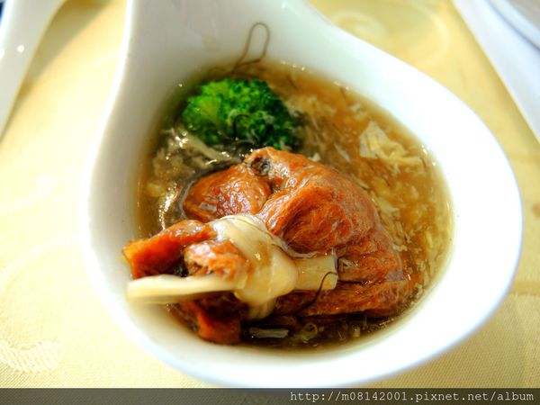 試一道師傅的手做料理,裏頭包了香菇、雞腿肉、朱貝、筍絲等多種食材,再淋上特製的高湯。