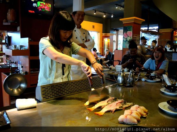 誰叫他是「饗宴互動鐵板燒」呢,互動到極致,還真的連客人都上去煮了哈哈!