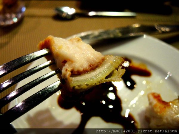 第一次拿切牛排的方式來切干貝,還可以分成四塊一口口吃,覺得這種食材的霸氣實在太爽快了。