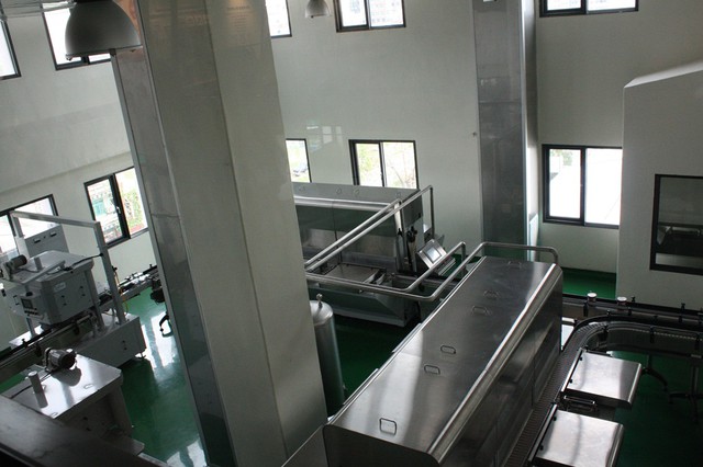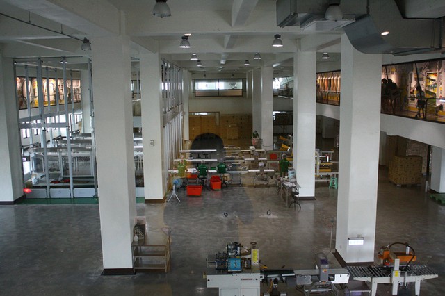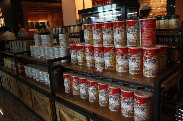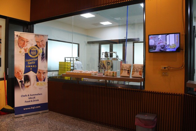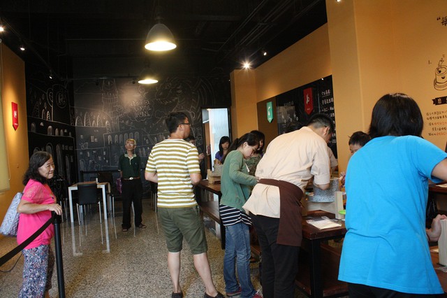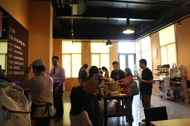 隔著玻璃窗,可以看到馬玉山食品公司如何製作給客人食用的沖泡穀物和其他商品