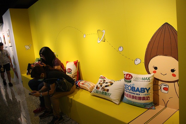 在開始逛紅頂穀創穀物文創樂園前,我們在馬玉山食品公司馬克杯裝飾品合拍