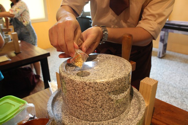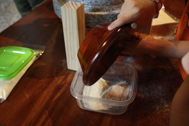 再逆時鐘的將穀粉慢慢的磨擠出來,我才發現原來磨穀物還有這份哲學原理。
