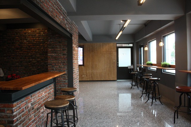 但是坐了10分鐘[外拍創穀創咖啡外面景色+隔壁一樓服務台入口],就被請到後方