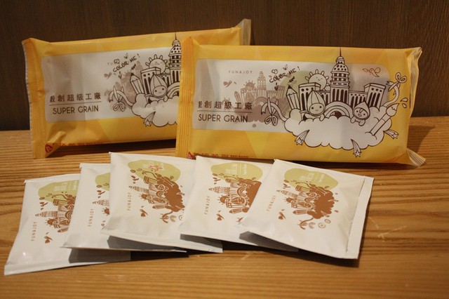 再交由機器幫忙包裝小朋友今天努力磨穀物的作品,每一個包裝裡都有