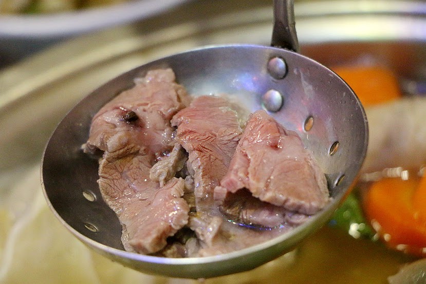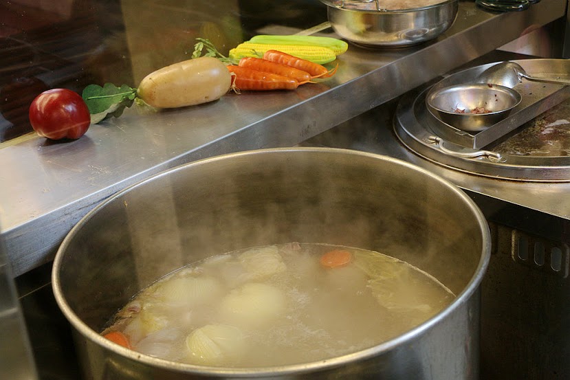 湯底使用牛骨 牛肉 些許中藥 洋蔥 高麗菜 紅蘿蔔及白蘿蔔下去熬煮