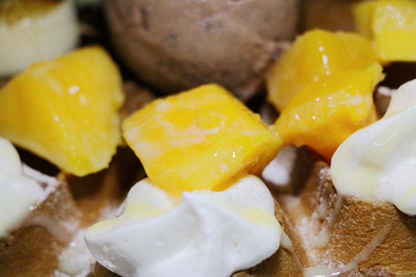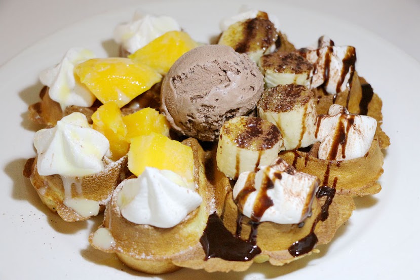 而鬆餅諾咪則選擇了香蕉巧克力+時令水果