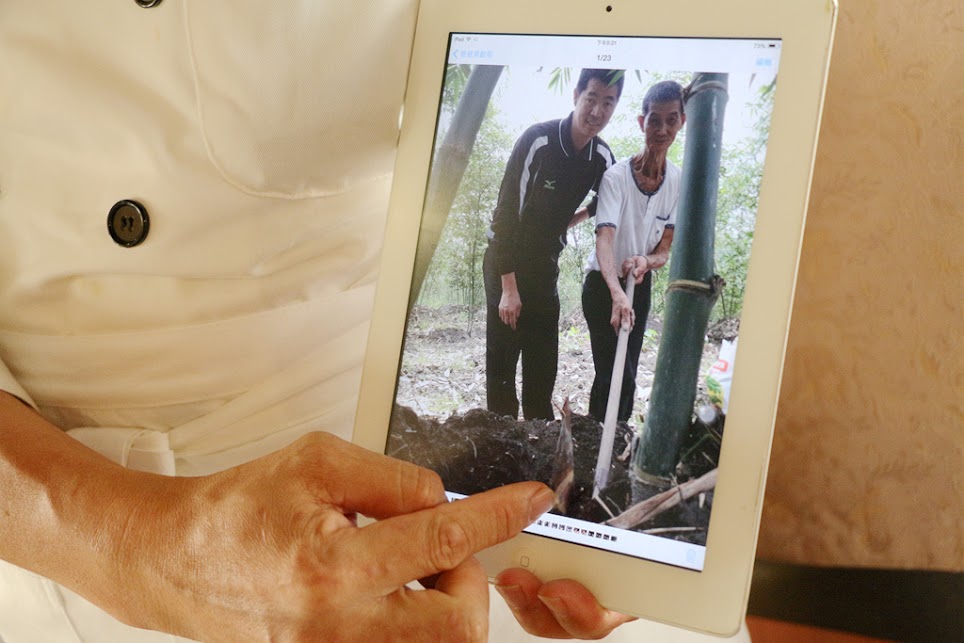 阿勇師還很可愛的拿出平板 分享著接下來出自於爸爸栽種的涼筍