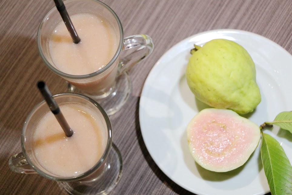 新鮮紅心芭樂打成果汁 清甜好喝!!