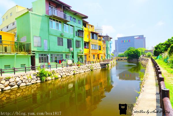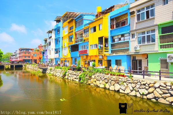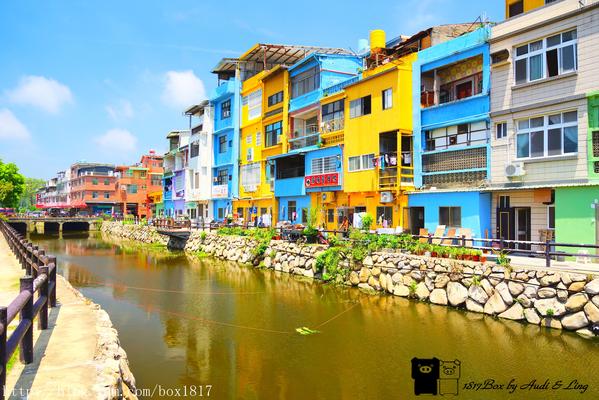 彩色房子就在山外橋河堤左右二旁,