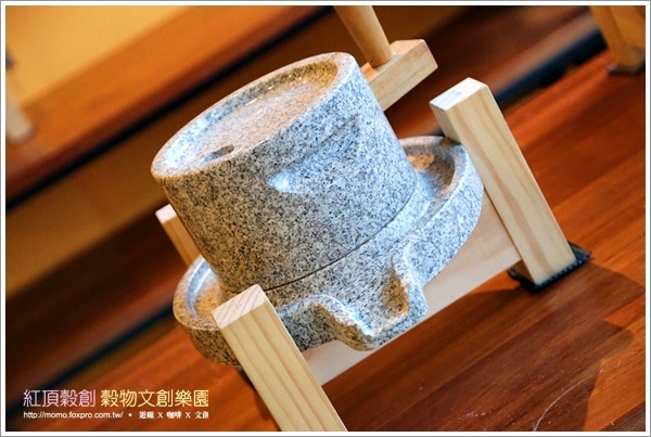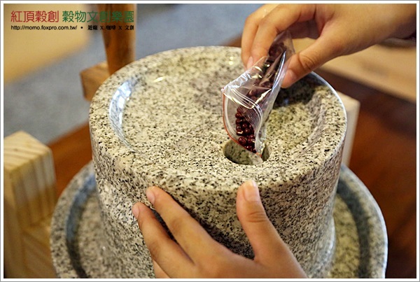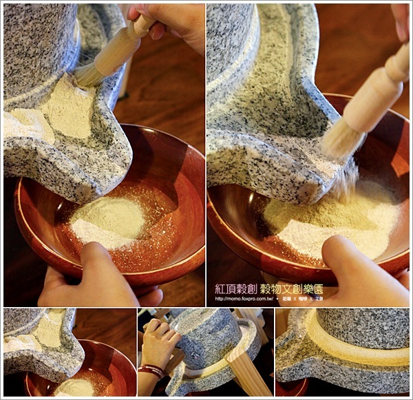 | | | 將穀類從石磨上的小洞口倒入後就可以開始進行第一次的研磨… |