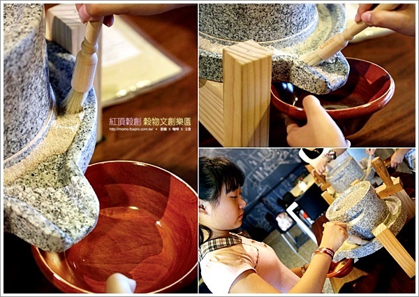 | | 這時候終於了解為什麼12歲以下的孩童可以由一位家長陪同… 因為這石磨轉久了手還真的會有點酸… 小小朋友轉到最後會越轉越慢甚至放棄XDD… 而家長在這個關鍵時刻就要跳出來接續未完成的研磨動作啦哇哈哈哈… |