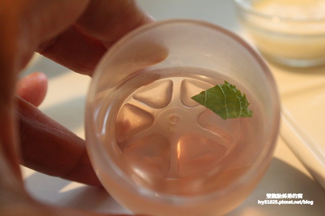 可以看到桑椹風味纖醋淺淺的粉色色澤搭配冰涼冰塊冰鎮過,在這個炙熱的南部天氣下