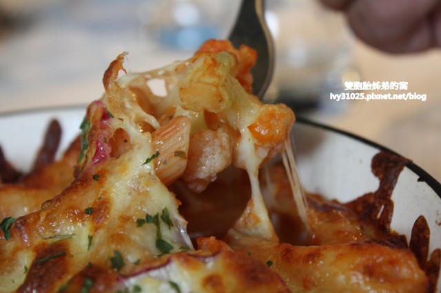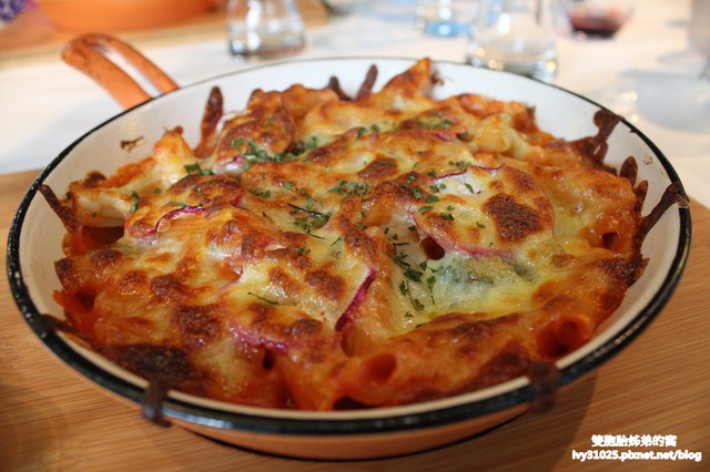 端上彩蔬蕃茄焗麵(奶),因為小朋友喜歡吃的貝殼麵已經沒有,所以點的這一道