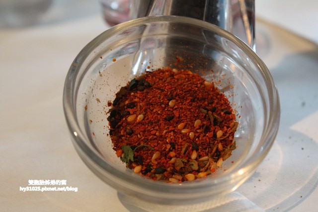 主餐,並附上紅色辣椒粉末,可是我們全家不吃,所以請服務生收回不要浪費了。