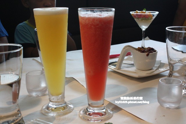 果汁,因為茶和咖啡類都是熱的,我不愛喝,拔拔也不愛,所以我們就沒點了,