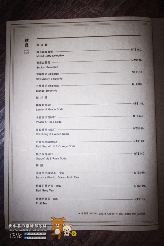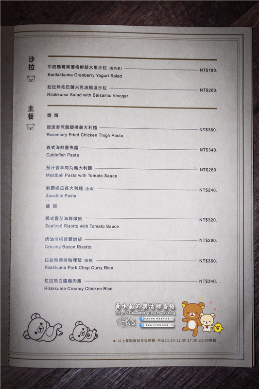 營業時間:11:30~22:00(下午1點半之後只供應下午茶,不提供主餐)