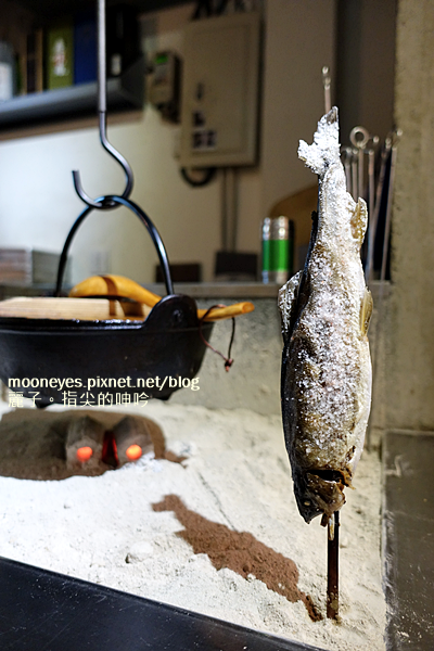 鍋子裡面是馬鈴薯燉肉,底下是活的炭火喔,醃製的香魚也是真的肥美有料!