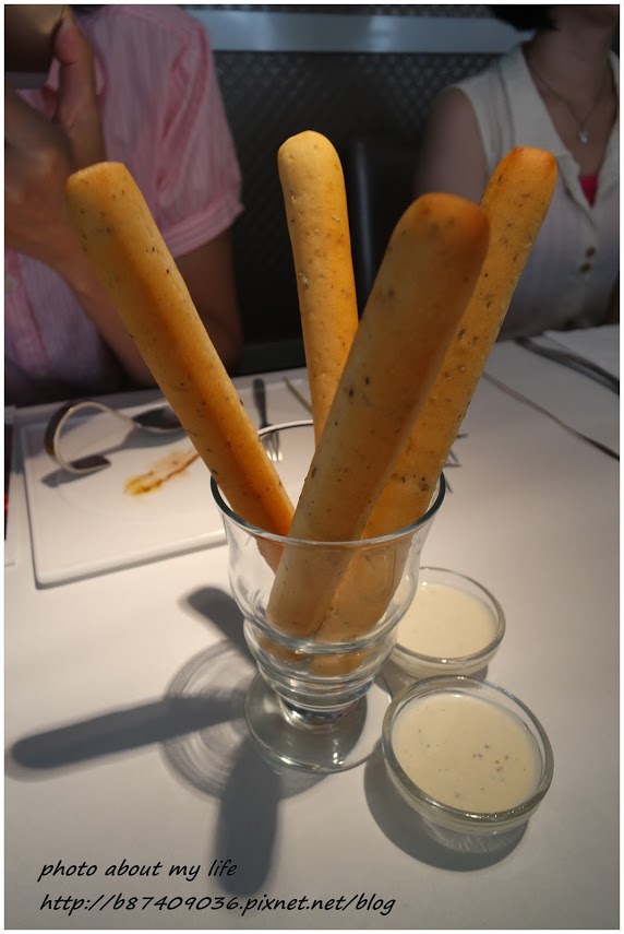 搭配麵包醬的美乃滋甜味帶點(優格?)酸和芥末子的溫和微辛 要不是怕吃不下主餐還真想多續點幾次XD
