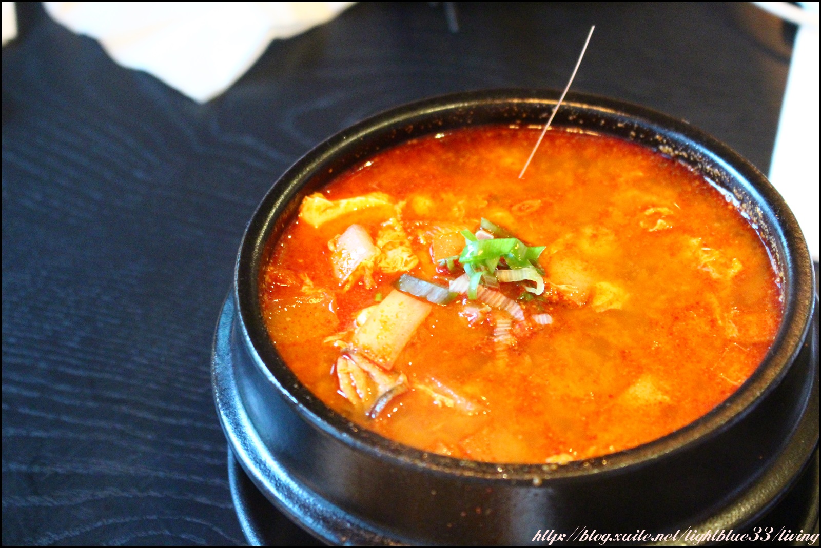 再來是韓式料理也少不了的「辣海鮮豆腐湯」,這是屬於一般小小辣程度,沒有看起來那麼恐怖