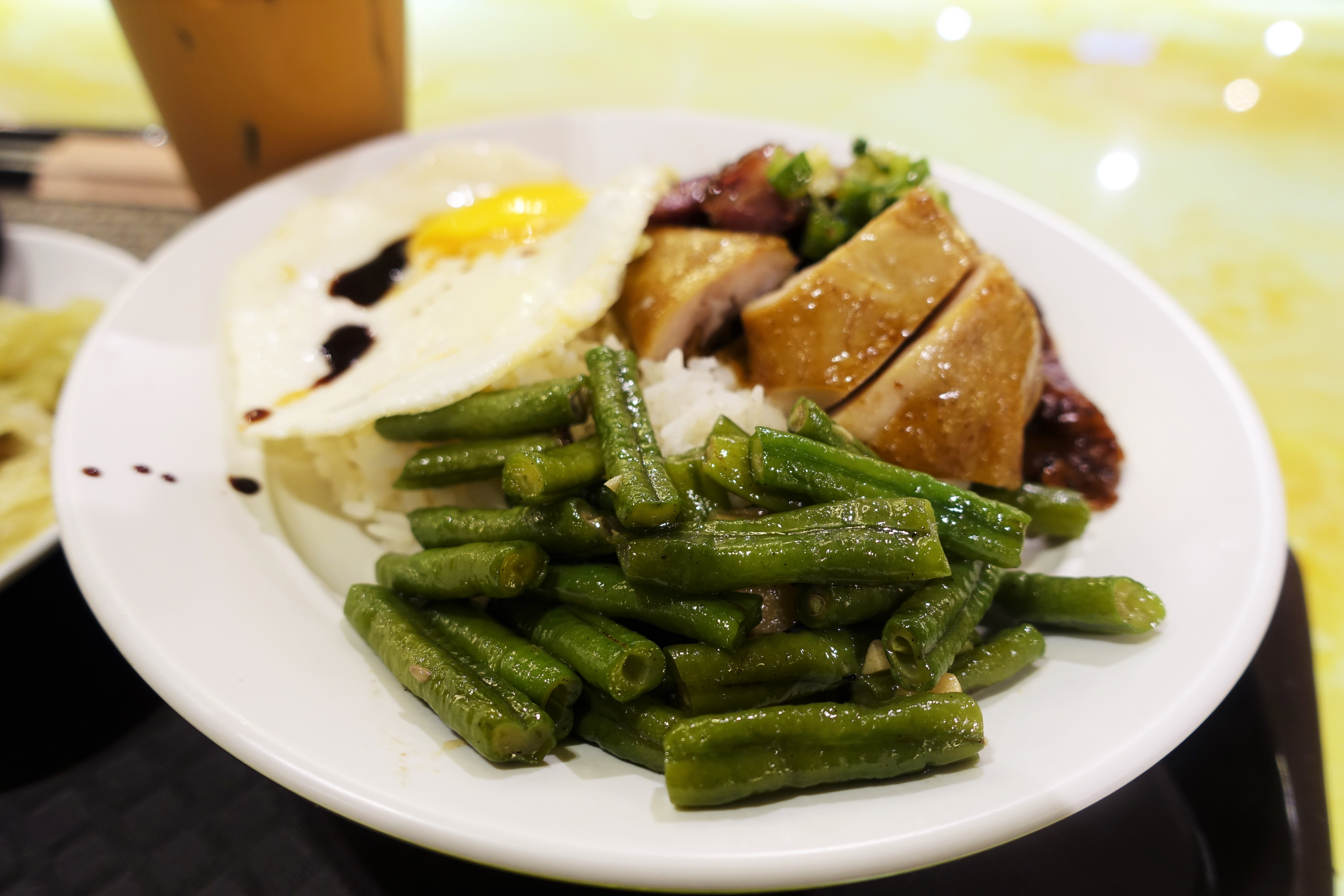 三寶飯就是叉燒+油雞+燒鴨的傳統組合,去吳興店有五寶飯(至於是哪五寶,哥吃過但忘了XD),配菜部分還有蛋與四季豆。