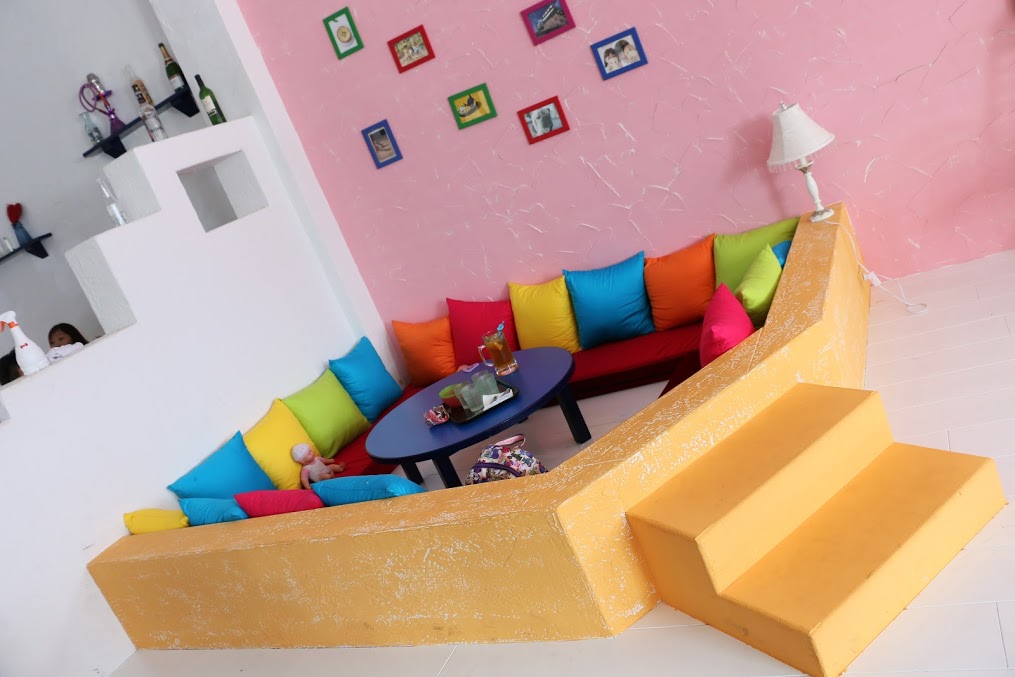 座位上都放著色彩繽紛的小抱枕