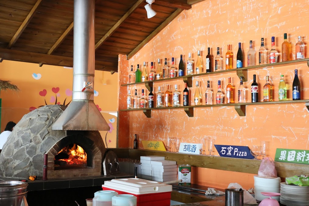 店裡有個石窯,熱騰騰的火焰