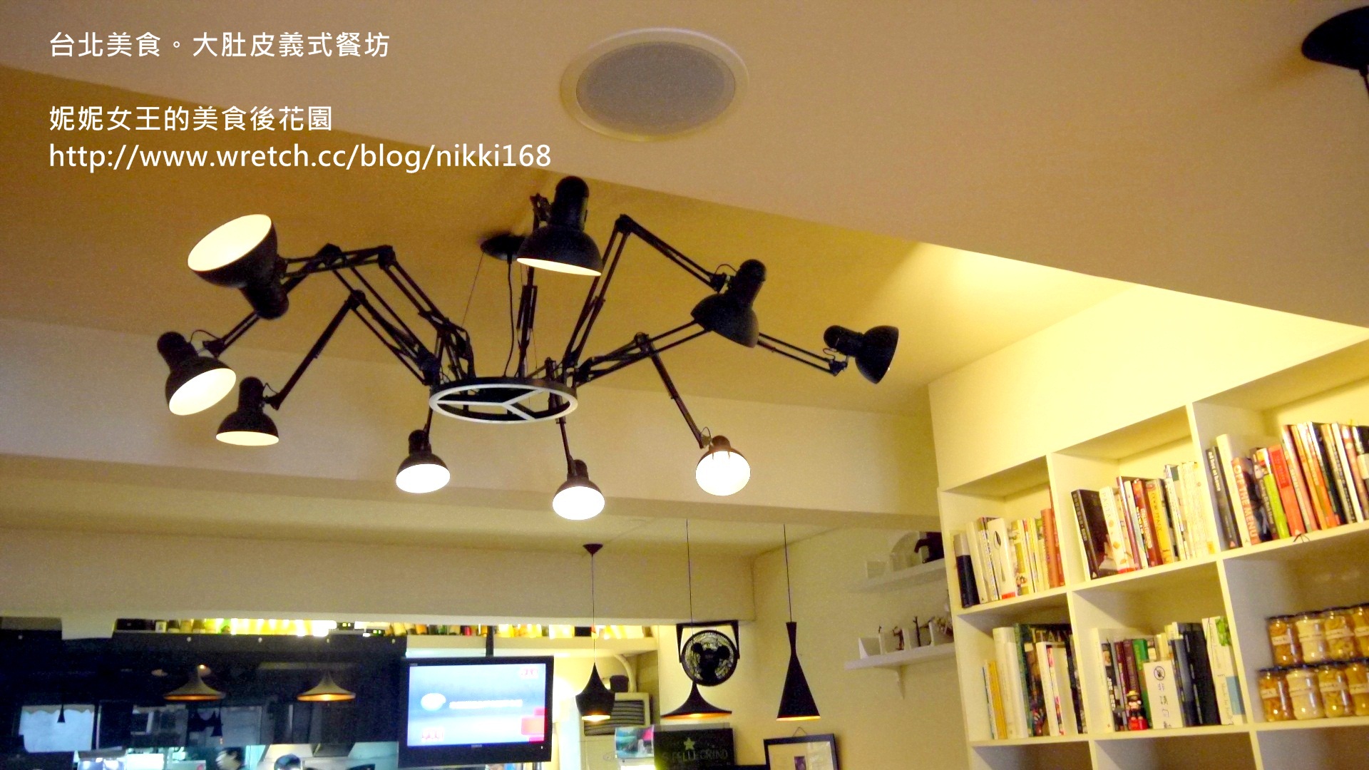 大肚皮義式餐坊店內的氣氛走的是溫馨路線,具有設計感的掛燈讓人在用餐的同時,也可以細細地觀賞這裡充滿巧思的設計。