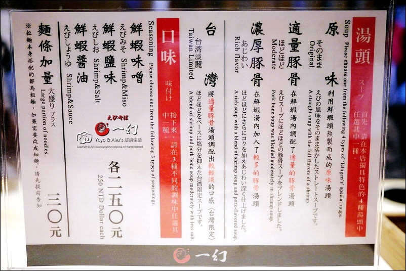 一幻拉麵的湯頭一律以甜蝦湯頭為基底,除原味外,另有添加豚骨的湯頭,