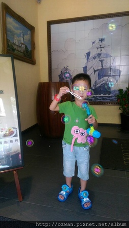 727自己帶了玩具來玩,跑去門口吹泡泡~