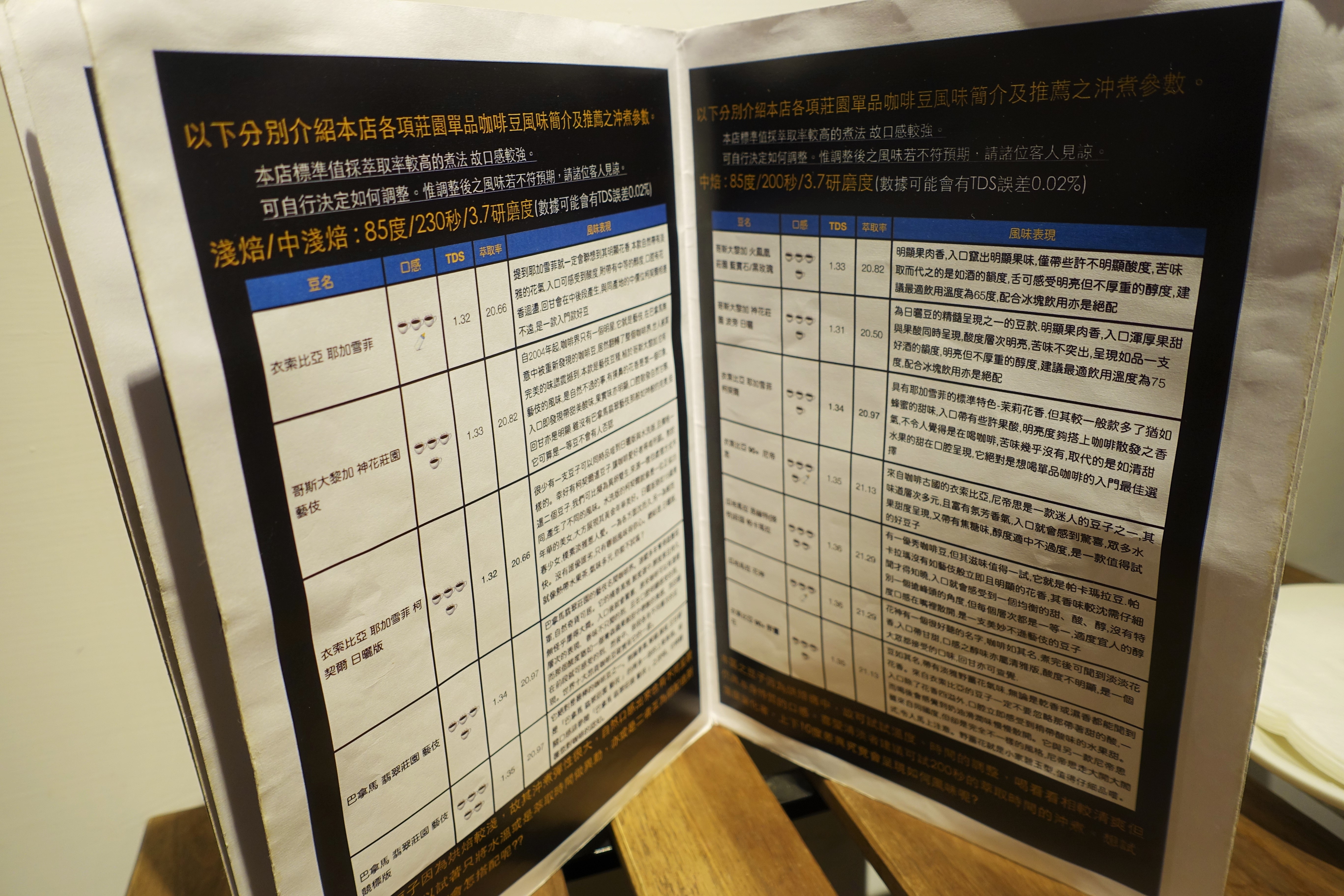 棕色MENU除了有每款精品咖啡的詳細介紹外,還可以跟老闆討論混豆客製化專屬單品。