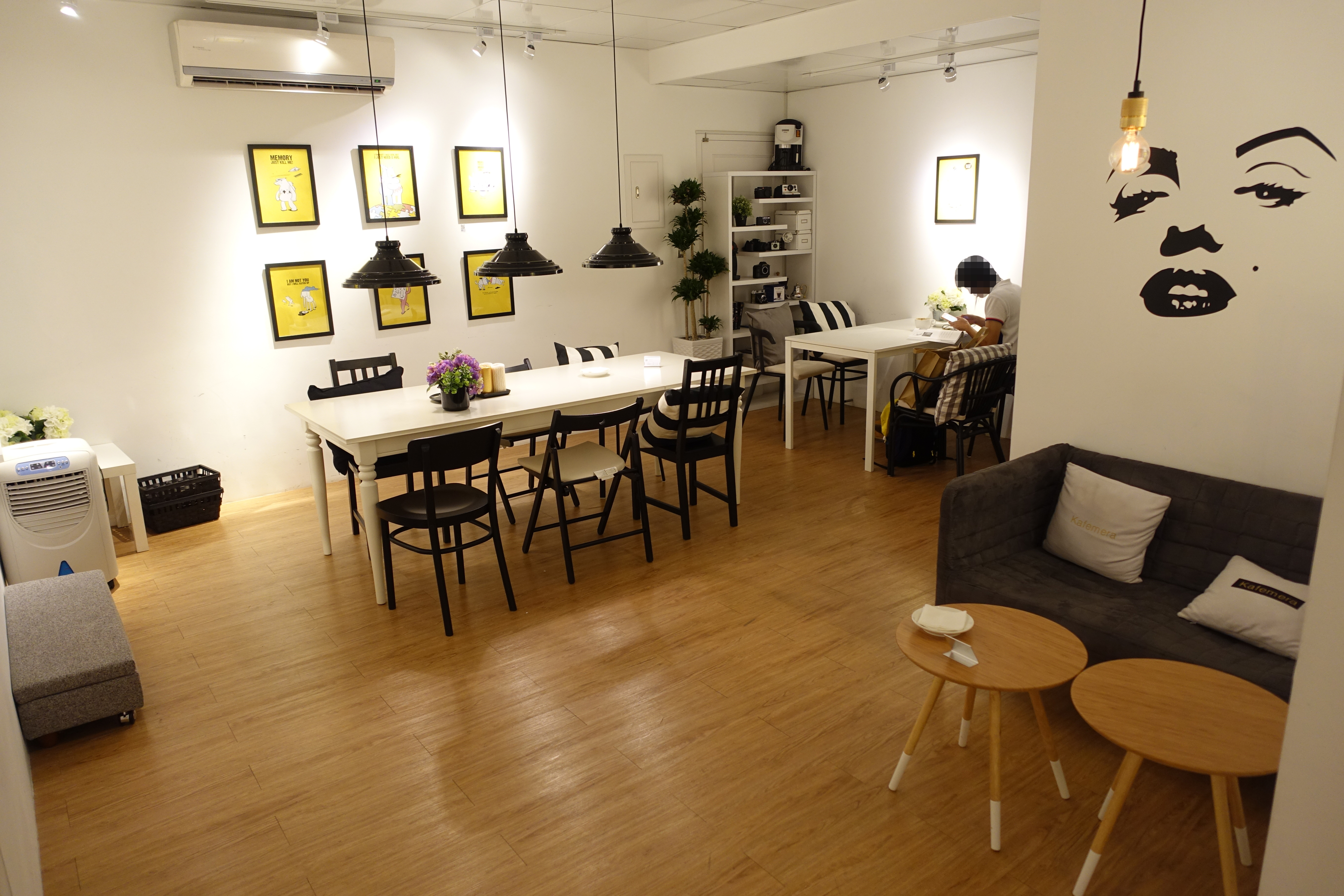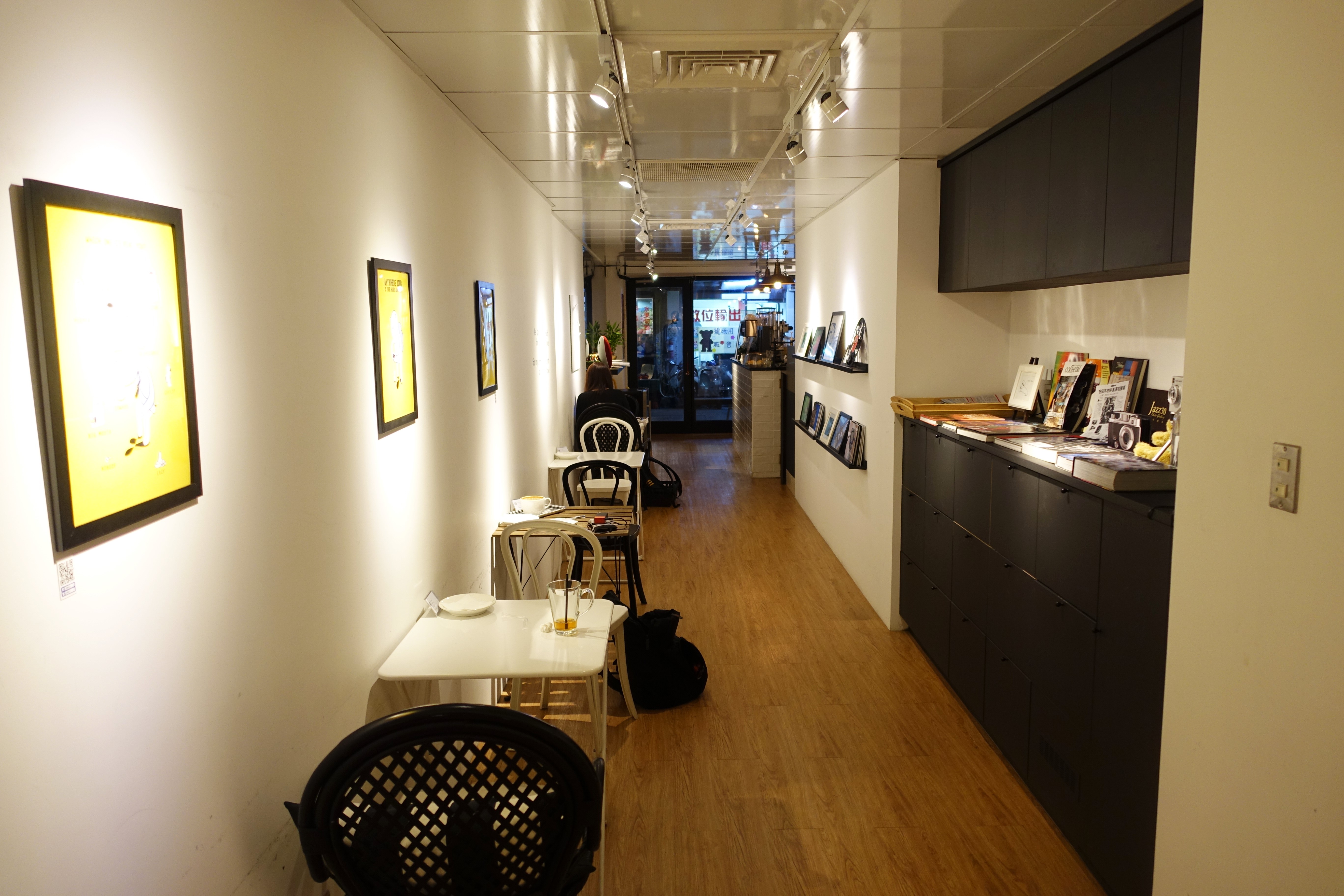 kafemera前半部屬於狹長的空間,老闆說這樣看起來很像藝廊的感覺,才開始與各種文藝工作者合作,每個月都會有不同的展覽。