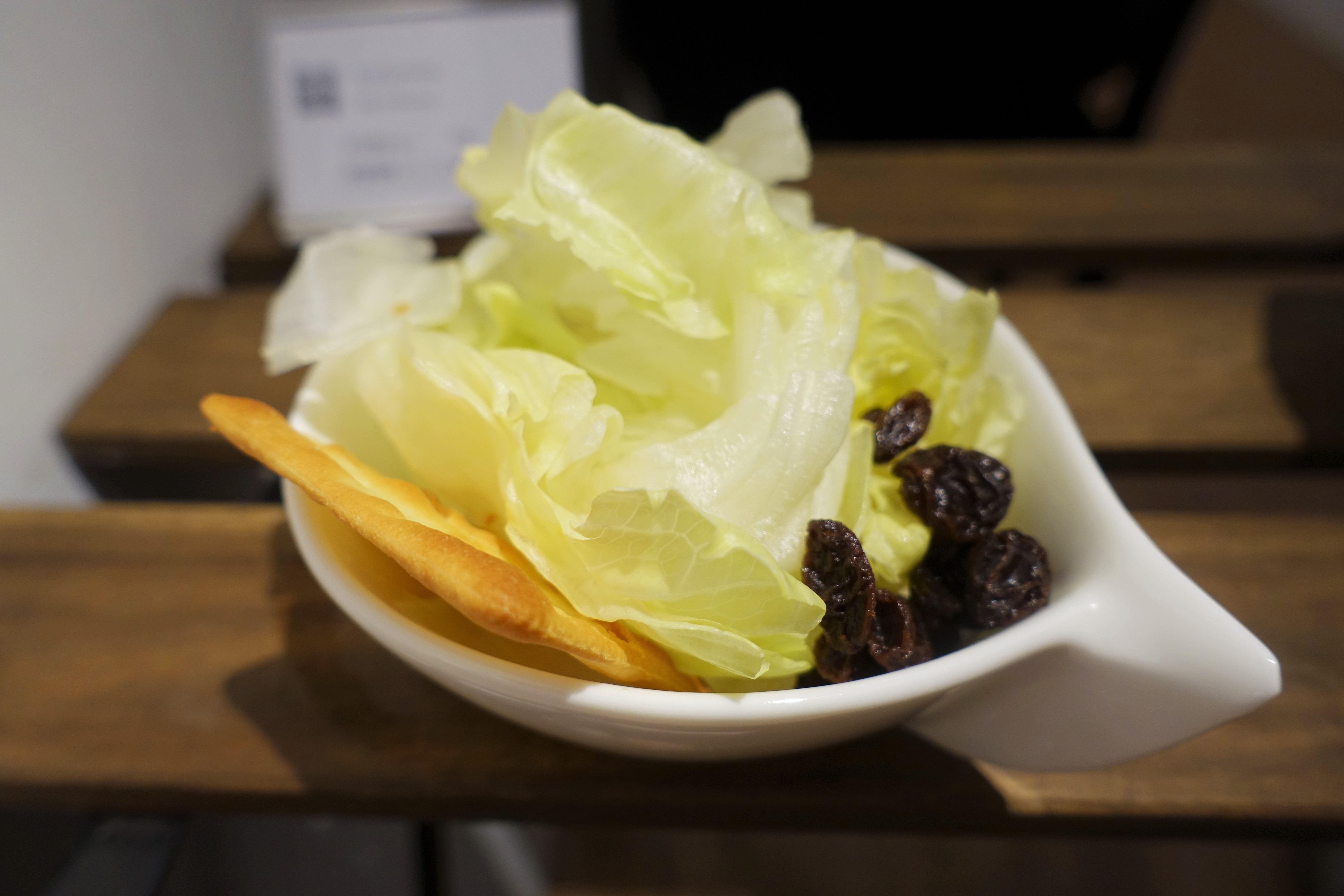沙拉的部分選用新鮮的蔬菜加餅乾與葡萄乾,表現中規中矩。