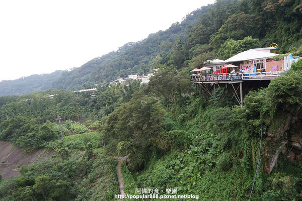 從吊橋上看"愛情故事館",原來底下是用鐵架支撐啊...