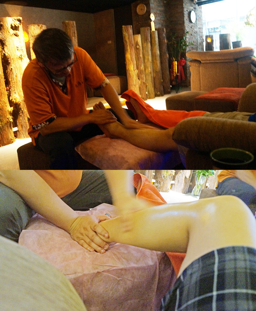 除了按摩之外,也有給雙腿熱敷,讓血液循環下