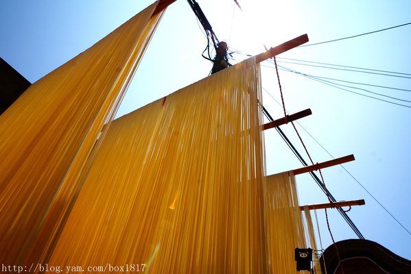 又細又長的麵線在陽光底下別有一番風采,