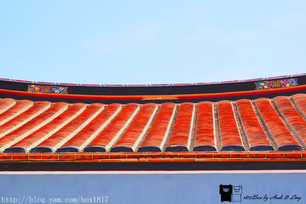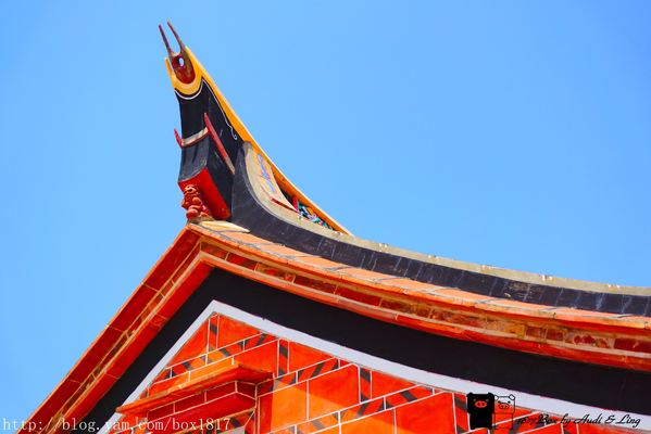 燕尾式古厝的屋簷上發現可愛風獅爺
