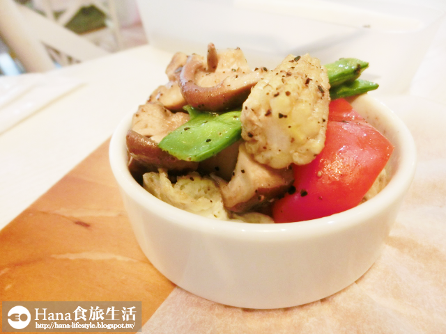 ▲隨附的蔬菜盅料好多,有彩椒、香菇、扁豆、玉米筍,