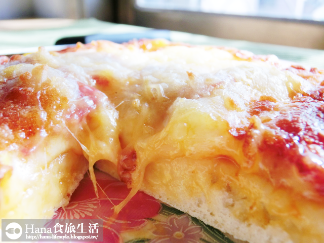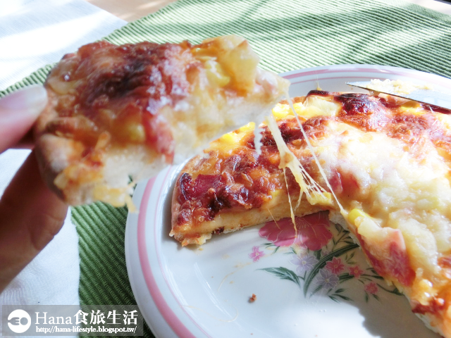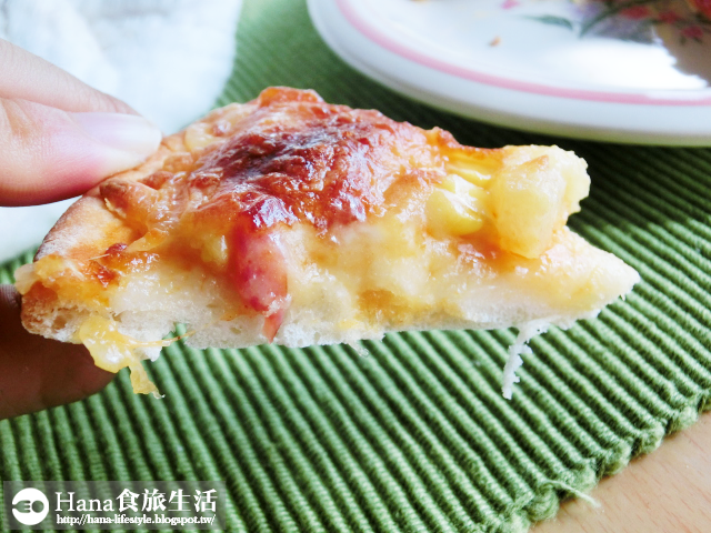 ▲底部的餅皮筋性較高,搭配濃濃的起士和夏威夷配料們,