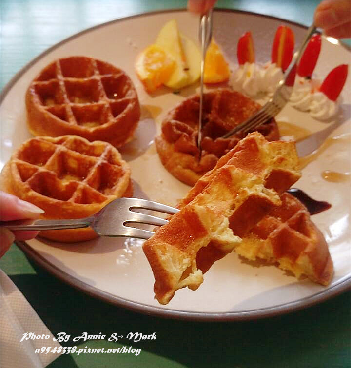 鬆餅切開後真的有麻吉夾心耶!