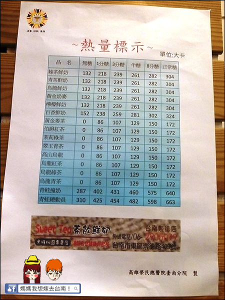 值得一提的是... 店家好用心!!! 還有告訴大家每一杯的熱量表~